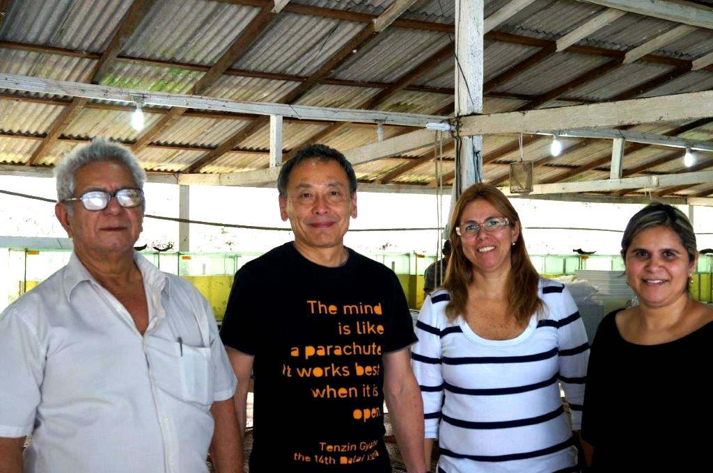 この美しいお魚に惚れ込んだのが、先日取材でお邪魔したペットバルーンさんの上村社長(左から2番目)。
