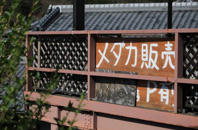 そろそろ取材も佳境に入ったところで来客と遭遇。しかも新婚さん、いらっしゃ~い(笑)。京都祇園で飲食店を経営する河井貴洋さんと奥様の未幸さん。新型コロナの影響で休業を余儀なくされ、マンボウでさらに痛い目に遇ったという2人。以前ドライブでこの地を訪れたところ、未幸さんがすごく気に入って家まで購入してしまったという田舎ぐらし初心者。来店動機は、「魚釣りのエサのつもりで買ったエビなどが残ってしまって可哀相だなと思い、水草やメダカを買いにきました」。