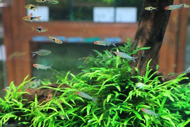 ラミーノーズテトラ、ラスボラヘテロモルファ、アノマクロミストーマシー、ハイフェソブリコンメタエコロンビアなどの魚たちがいますが、「どちらかというと水草が主体なので、魚たちは脇役に徹してもらっています」。お互いの環境を越権せず、水草と共存できる魚たち。だからこそ両者とも幸福になる。それはまさしく藤田さんの生き方に通じるような気がします。