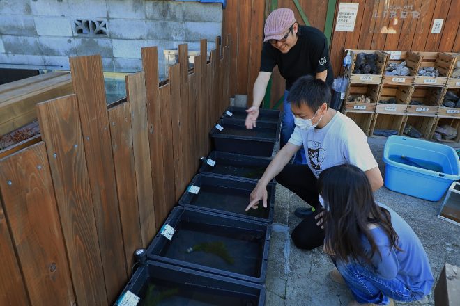 メダカ飼育に関してアドバイスする藤田さんと、熱心に聞く河井さん。確かに初対面同士ではありますが、何か息が合っている感じがしました。もしかしたら、これぞ「来て欲しかったお客」だったのかも知れません。これは後で聞いた話なんてすが、後日インスタグラムでフォローし合ったところ、藤田さんの知り合いとつながっていたそうです。「意外と世間は狭いですね(笑)」。いやいや、「キワメテ!水族館」もしっかりつながらせていただきました。