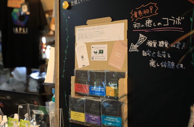最新ブレーンとの活動は、アクアリウム映像とハンドパン音源と英国紅茶の異色コラボ。その映像を制作したのが藤田さんというのがコラボ商品の目玉です。実は音楽というジャンルにも精通していた藤田さん、「自分がやりたいと思うことが一番です。やりたいことしか考えていません(笑)。もちろん採算は度外視です」。人と人とのつながりこそ財産。場所なんか関係ない。こうして、ちゃんと活動拠点として成り立っているのが何よりの証拠です。