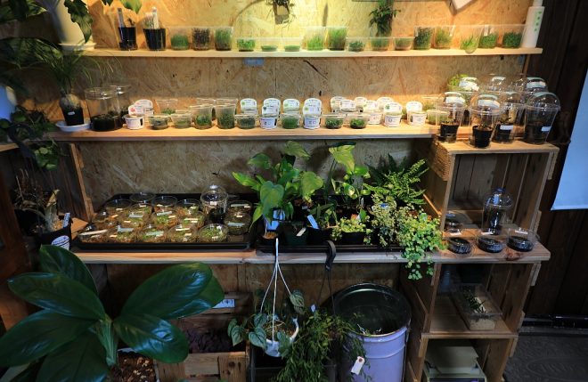 店内の奥は、どちらかというとテラリウムがメイン。藤田さんが植物とこだわる理由がここにあります。ちょっとしたアトリエ風。