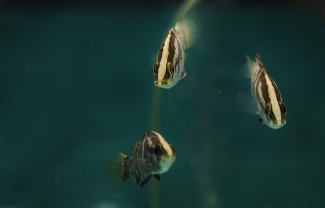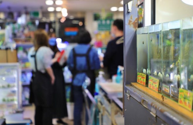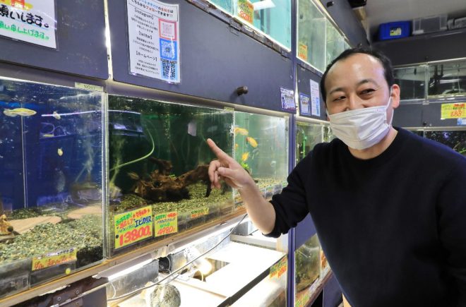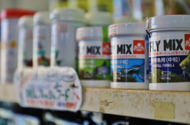 特筆すべきは、フライミックスを店の生体すべてに与えている点。「食いつきがいいことは実証済みですが、フレーク状ではないのでそれぞれの魚がどのくらい食べているのかを把握しやすいんです。偏食で有名なオヤニラミも食べてくれます。なので、うちの魚はどれも健康ですよと胸を張って言えます」。
