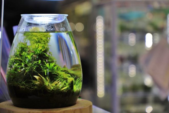 時間を見つけては、小さく可愛い苔テラリウムにも挑戦。テーマは「人間の世界と森」なのだそう。実は、現在水草レイアウトコンテストに向けて、60㎝の水槽を製作中の舞子さん。「どんな作品かはナイショです(笑)」。ニューラージパールを使って、「カッコよく、そしてワイルドに仕上がればいいなあ、と思っています」。若い人は覚えが早いだけでなく、成長も早いもの。1年後、2年後の成長が本当に楽しみです。