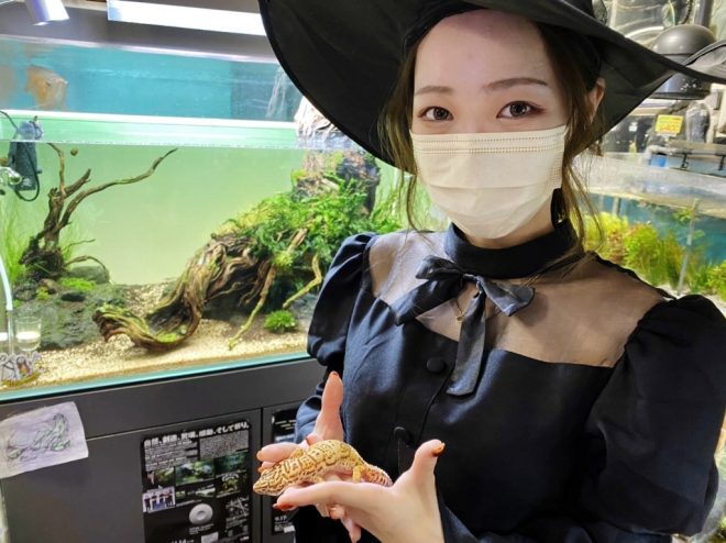 生きものが大好きでこの仕事に就きたい思いを胸に、去年7月に入社してきた勝浦舞子さん(神戸市)。見るからに女子力強め(笑)。セレクトショップかスイーツカフェにいそうなキラキラガール。
