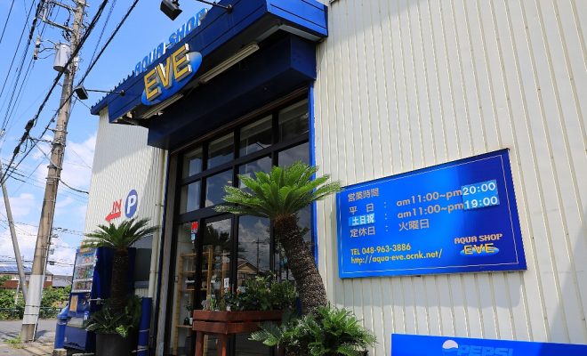 関東エリアの中でもアクア激戦区といわれる埼玉県。そんな中で勝ち残っていくためには、アクアに関する質の高いノウハウもさることながら、初心者でも女性でも気軽に立ち寄れる雰囲気もウリのひとつに。去年創業25周年を迎えたアクアショップイブ。平成10年に急逝した前オーナーの父親・福田勝彦さんの後を継いだ長男の良一さんは、「あまりにも急だったので、色々覚えるのは大変でした。だって、それまで魚にまったく興味がなかったんですから(笑)」。店長として、今の場所に移ってきて10年ちょっと。そんなに経っていることを感じさせない、いつもフレッシュな気持ちで店を切り盛りする夫婦の姿がありました。