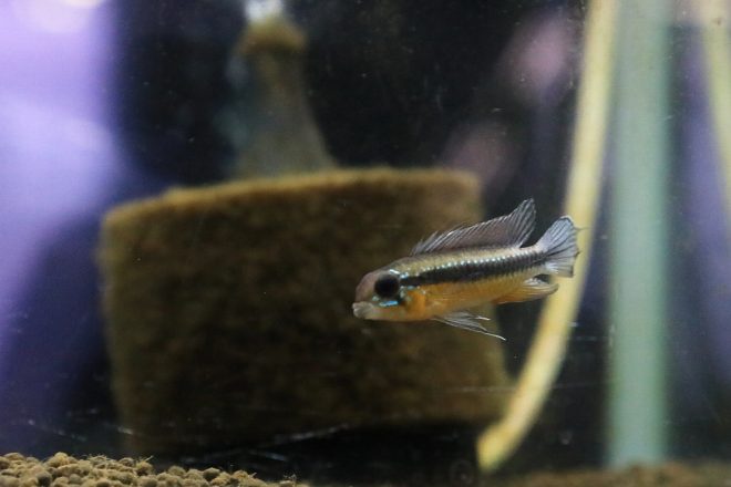 こんな子もいました。観賞用熱帯魚として人気の高いヨーロッパブリードのアピスト エリザベサエのペア。水質の変化には敏感なため上級者向けといえます。