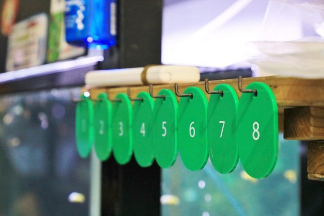 ん?これは一体?「さまざまな目的を持ってこられるお客さんがいらっしゃるので、順に対応するのに不公平があってはいけないと、思い去年からやり始めました。この番号札を導入してから、接客がスムーズになりお客さんからのクレームも激減しました」。まさに問題と対策。頭を抱えていても、何も生まれませんからね。