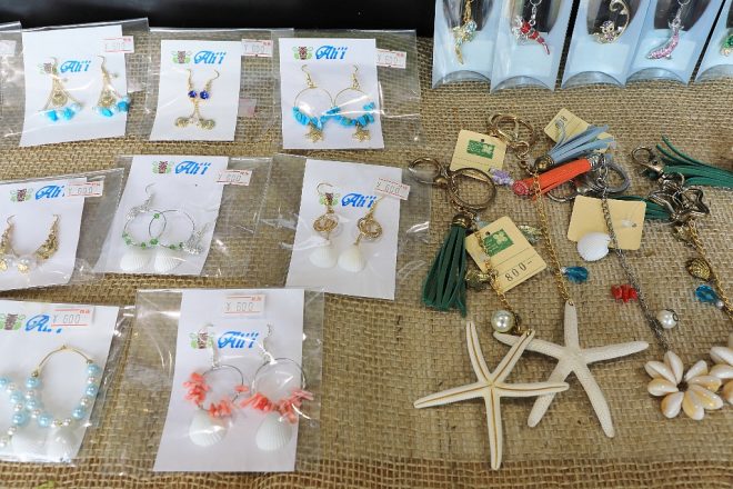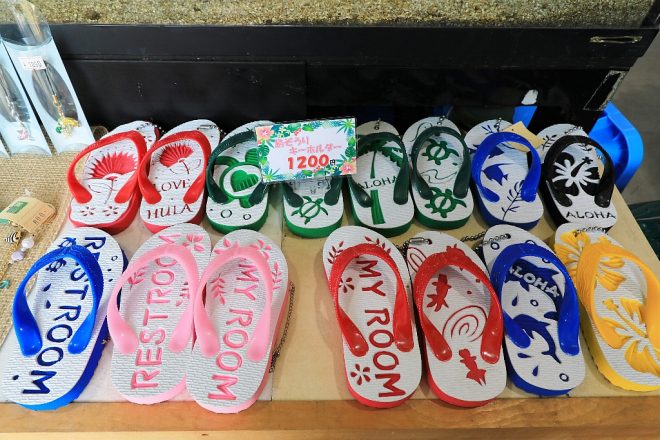 可愛いチビッ子用のビーサンかと思いきや、キーホルダー。このほかにも各種アクセの数々が。どれもこれも知り合いのお友だちがつくったというオリジナルグッズ。なんだかホッとしちゃいます。