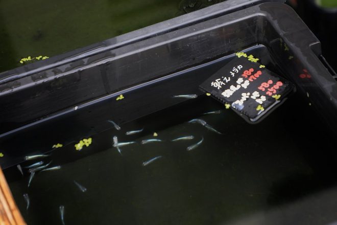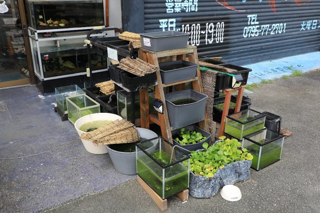 屋外スペースには、季節柄メダカを多数販売。ところがつい先日盗難に遇いました。大変だったでしょう?「持っていかれたのは1ケースだけでした。だから大したことないです(笑)」。特に気にする様子もなくサラリ。