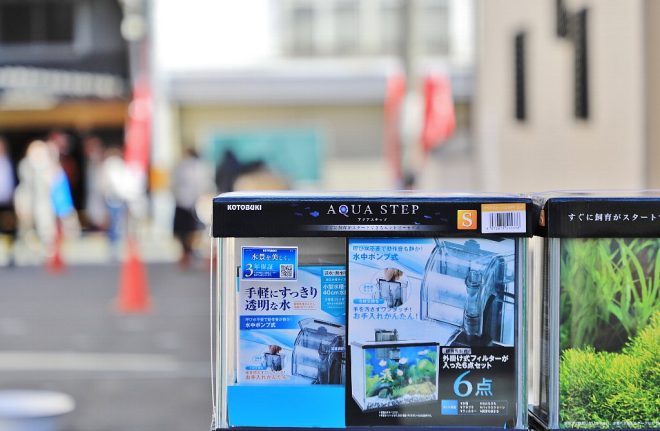 豪華賞品の中には、ビギナーでもアクアがすぐに楽しめるKOTOBUKIのエントリー水槽セット・アクアステップも。