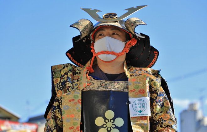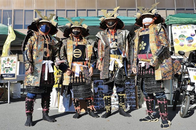 よくよく聞いてみると、大和郡山城とも深い関わりのある戦国武将・筒井順慶ゆかりの筒井順慶顕彰会メンバーのみなさんでした。駅でいうと、近鉄郡山駅より一つ南の筒井駅。その名は駅名だけでなく町名にもなり、駅近くには筒井城址も。今回はハンドメイドの甲冑衣装に身を包んで、大和郡山市を盛り上げようとやってきたのでした。全然いい人たちでした(笑)。こりゃ失敬!