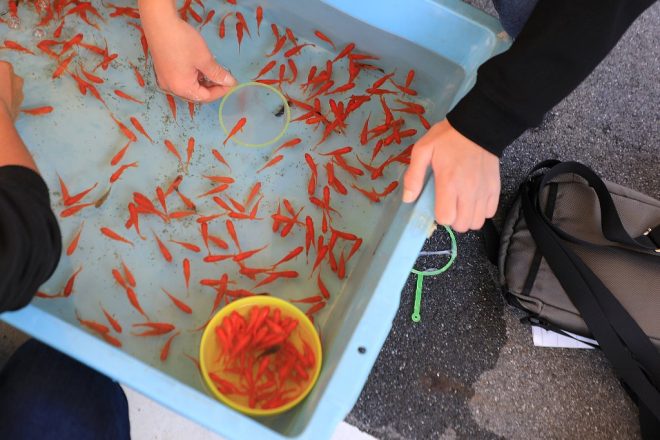 そして、この日わざわざ金魚まつり&柳神くん祭に足を運んでくれたみなさんに、金魚をおすそ分け。こんなにたくさんきてくれて、本当にありがとうございました!