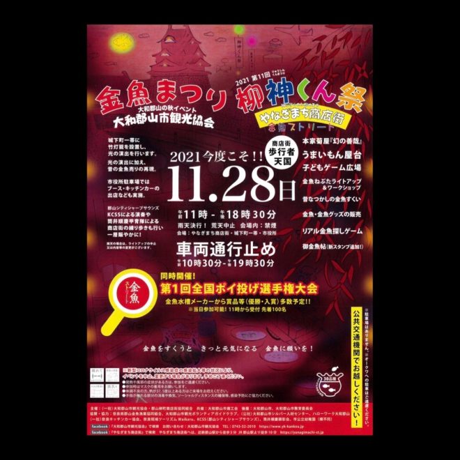 金魚まつりは、夏に開催が予定されていました。が、コロナ禍で中止に。今年は無理かも知れないと開催が危ぶまれましたが、やっとこさ無事開催。しかも柳神くん祭とドッキングしたことも功を奏し、多数の来場者により大いに盛り上がりました。