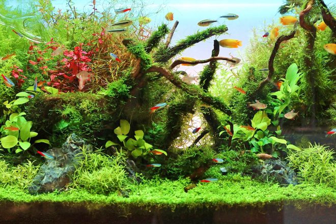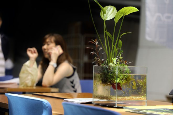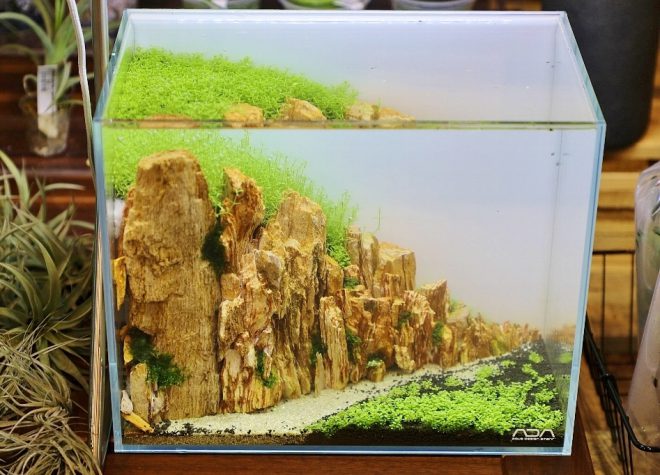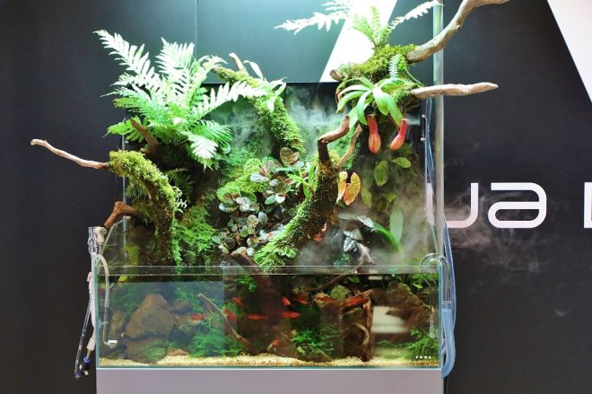 こちらはアクアテラリウム。コケだけでなく、さまざまな熱帯植物が取り入れられ、植物とアクアが無関係でないことを証明するかのようなコンプリート感が満載でした。