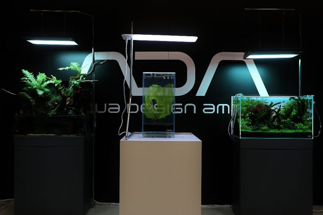 さてさて、取材のクライマックスはやっぱりアクアでないと。今回、関西では初めて展示することになったという、あのADAさんがブースを展示。完璧なまでにレイアウトされた水槽や、テラリウムなどがさすがのセンスでディスプレイ。水を張って生体が泳いでいる水槽をみると、やっぱりホッとしてしまいます(笑)