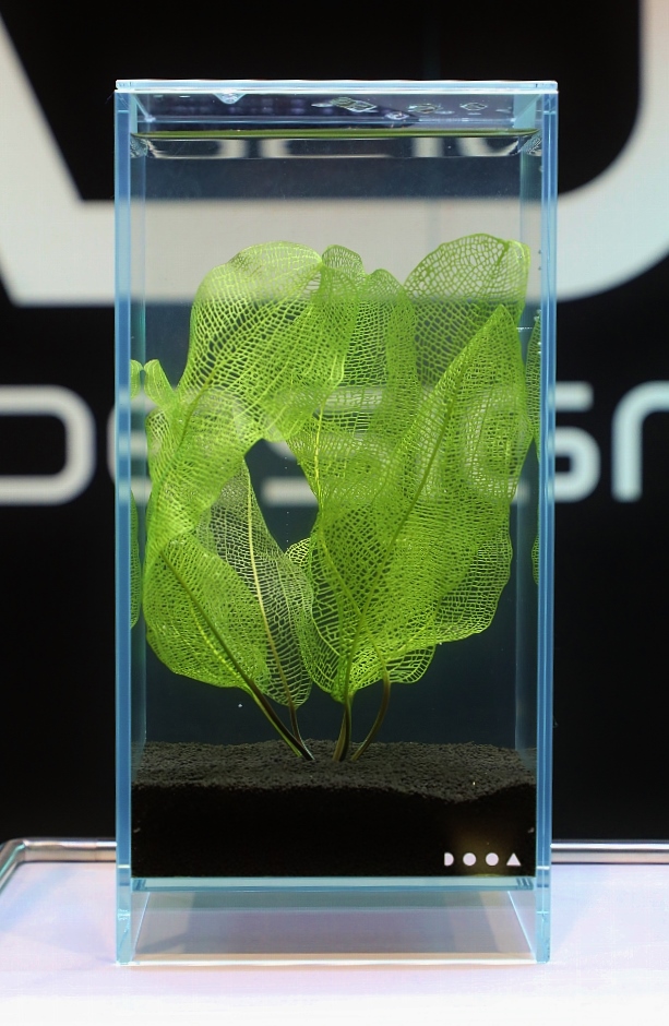 マダガスカル産の塊茎植物・レースプラント。コンパクトな水槽の中で、ゆるやかな水流によりまるで風のようになびいています。植えてから4~5カ月で見頃を迎えるというレースプラント。シュリンプなどの小さな生体も飼育OK。しかもできるだけ自生に近いかたちのシチュエーションが可能なよう、専用ソイルなども今夏販売予定。たった一品種だけの世界観。しかも「自生に近い」というキーワードが印象的でした。