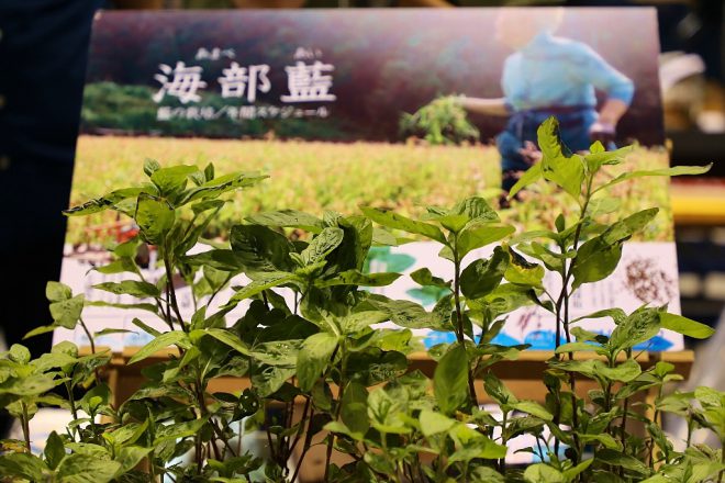 海部藍は、かつては徳島県全域で栽培されていたほどの植物がベース。藍染めといえば誰もが一度は聞いたことがあると思いますが、植物そのものをこうして見れる機会はめったにありません。
