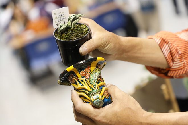 ハオルチアやエアーフランツのチランジア、ラン科のジュエルオーキッド,アグラオネマなどなど。これでもかというほど王道の植物も勢揃い。これだけのラインナップだけでもすごいのに、よくもまあ色々とマニアックなものが集まったものだと。出品に際するガイドラインも結構ちゃんとしていて、単に商売目的だとアウトの場合もあるのだとか。次代を担う若い人たちが、単にやりたいことをやるというノリだけではない、意外とクールな客観性を持ち合わせている点も、成功の要因だと思います。