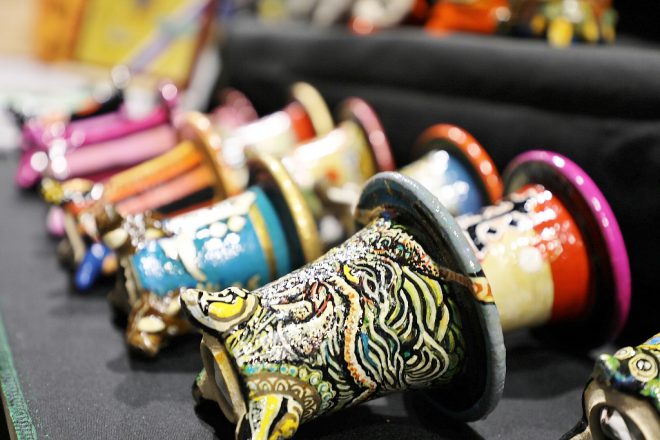これは一体?曰く、鉢アート。昔の鉢は独自の伝統的技法でつくられていたんですが、もうちょっと派手でもいいんじゃない?と自らを奮い立たせて鉢アートに勤しんでおられるのが田代智裕さん。それはそれはハデなこと(笑)。ポップというかサイケデリックというか。動物などモチーフにした多くのアート作品が並べられていました。こうした努力も、古典植物を若い人にもアピールするためのねらいなんですね。