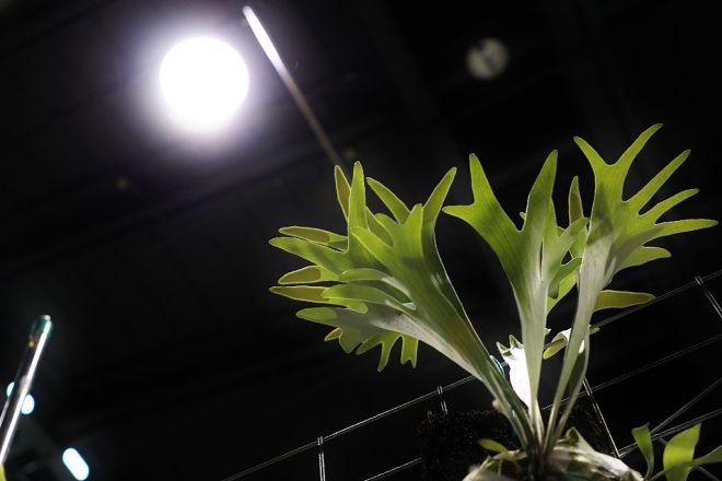 会場には、数多くの植物がひしめき合っています。しかも京セラドームの建物構造ともマッチしていて、まるで植物栽培ファクトリー。ブース数は58。植物を生業とする生産者はもちろん、とことん好きな植物を研究しつくした植物のスペシャリストに至るまで、出場者のプロフィールはさまざまです。