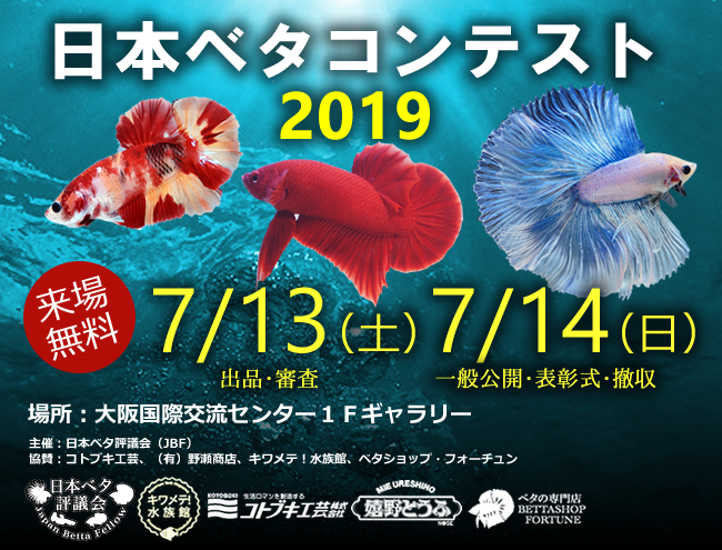 1年に1度のベタの祭典「日本ベタコンテスト2019」。出品数・来場者数とも年々増加し、クオリティーも高まっています。今年は7月13日(搬入および審査のみ)・14日に開催されますが、今年のベタコンテストはひと味違います。例年にないちょっとした耳寄り情報をお届けしましょう。