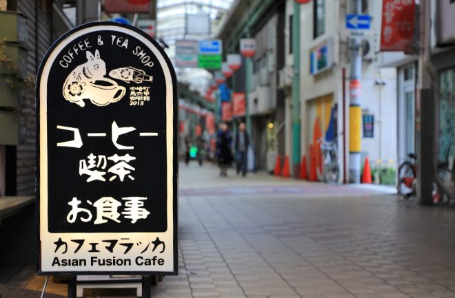 昭和のレトロ感が漂う大阪市北区の中崎町界隈。小さいながらもユニークな雑貨店やカフェが多く、国内外の観光客たちの人気スポットにもなっています。ちょっと摩訶不思議な雰囲気の「カフェ マラッカ」もそんな一角に。確かにユニーク。まぎれもないアジアンテイスト。オープンからまる3年。可愛くて小さな魚たちも居心地がよさそうです。