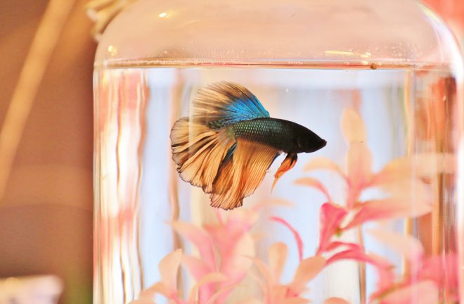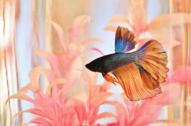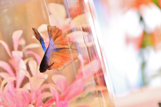 そして、3階にも4匹のベタがいます。中2階とはまた違う、摩訶不思議なアジアンテイストとの相性もグッド。