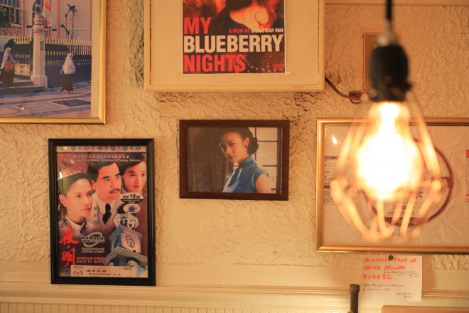 店内に入り、螺旋階段を上がって客席へ。おお~、オリエンタルな風がプンプンと。壁面には古きよきアジアを思わせるような写真や絵が、まるで博物館のよう。