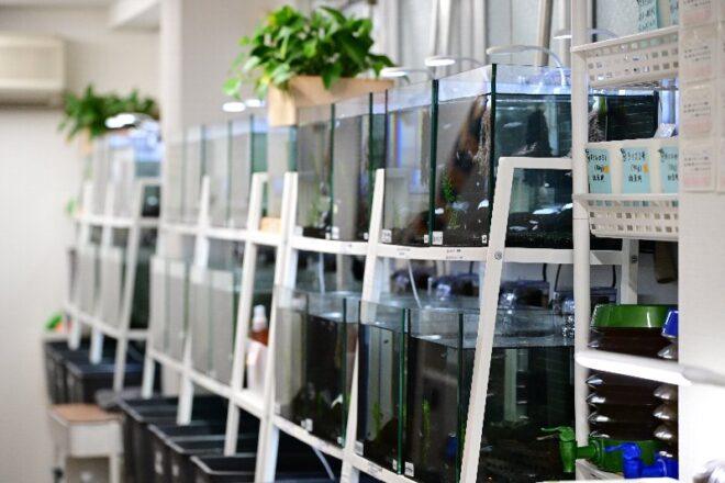 最後に聞きたかったこと。SNSでメダカの個体しか画像アップされていないのは意図的?「そうです。来てからのお楽しみという意味からなんです(笑)」。開けてビックリ玉手箱。今回初公開となりましたが、ぜひ一度お店を訪ねてみてくださいね。