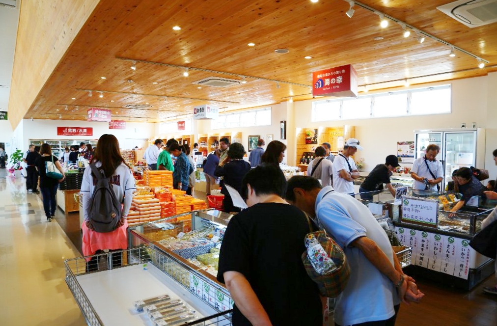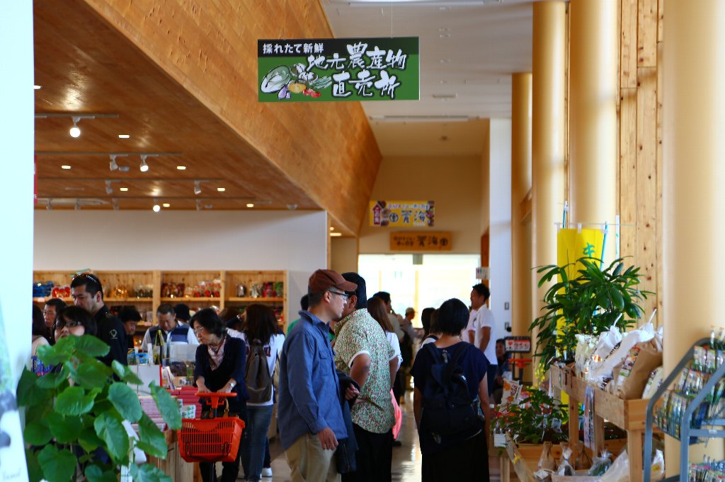 早くもお土産や地元農産物を買い求める人がたくさんいました。