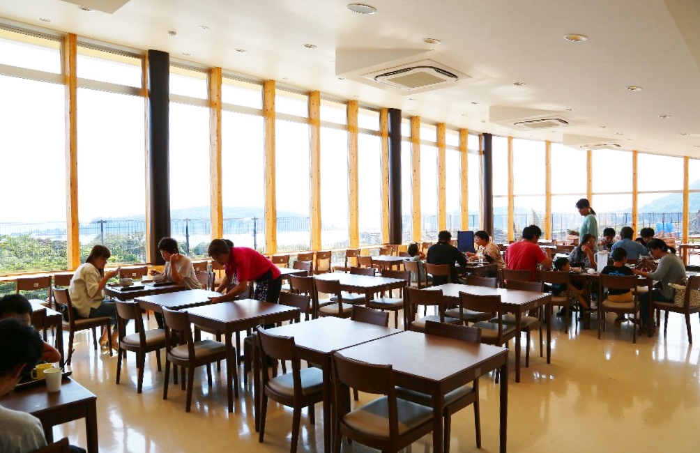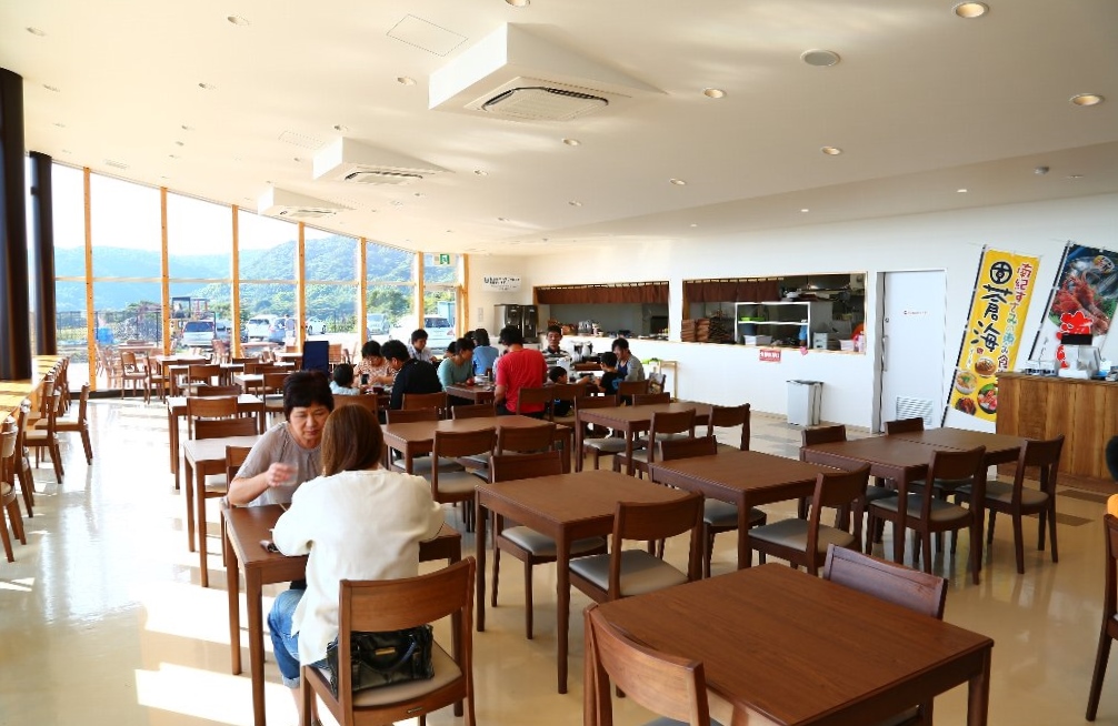 豪快な黒潮が見渡せるレストランもカフェっぽくていい感じ。