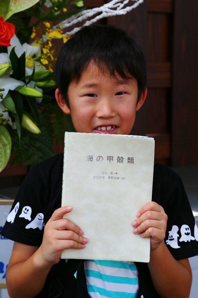 ん?手にしてるのは「海の甲殻類」と記された文献!