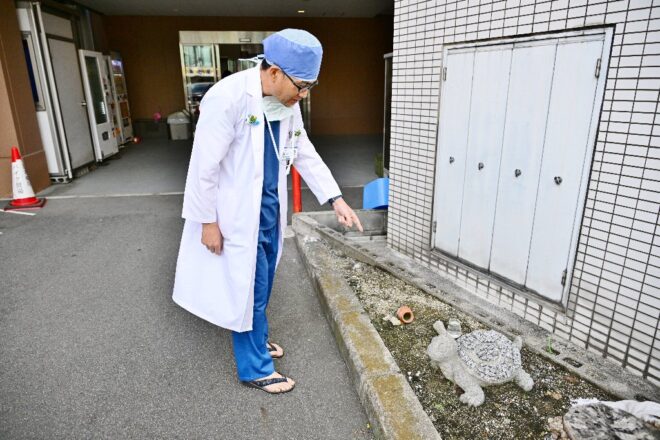 「カメは万年」といわれるほど、長寿を象徴する生きものとして昔から知られています。そういう点でいえば、ポンちゃんがこの病院にやってきたのは、高齢化が進む寝屋川市にとっては頼もしい存在であることは確かです。