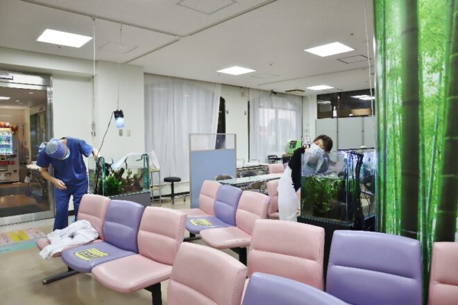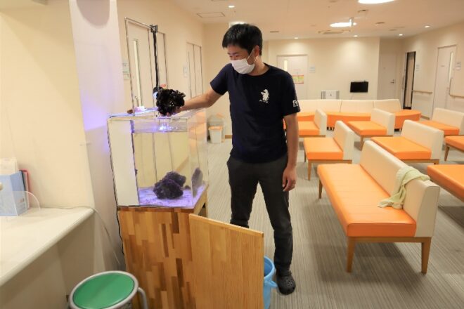 院内のロビーに広がるアクアな絶景。こんな病院見たことない。大阪府寝屋川市の医療法人一祐会 藤本病院では、医療スタッフの手によって水槽が管理されています。前編では主にロビーを中心とした水槽を紹介しましたが、後編では屋外に設置された専用池と産婦人科を中心に設置されている水槽をご紹介。そして、それらを支えるアクアな人たち。笑顔の絶えない愉快な仲間たちの結束が、水槽部を支えています。