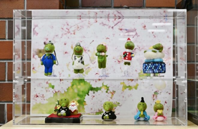水槽ではありませんが、ここにもポンちゃんが。しかもアクリルケースに納められたフェルト細工のポンちゃんは、こいのぼりだったりサンタクロースだったり。もちろんオリジナル。ポンちゃんのファンだという、麻酔科の女医さんによるハンドメイドなんだそう。みなさん、どこまでポンちゃんが好きなんでしょう。