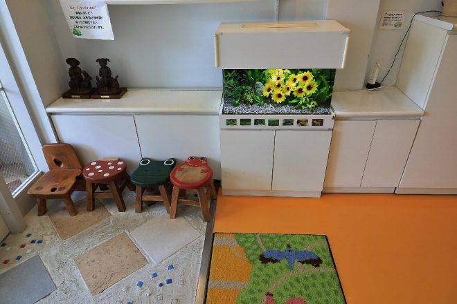 水槽の下には、個体の名前が写真とともに書かれていて、文字に興味を持ち始める園児たちへの配慮も忘れていません。