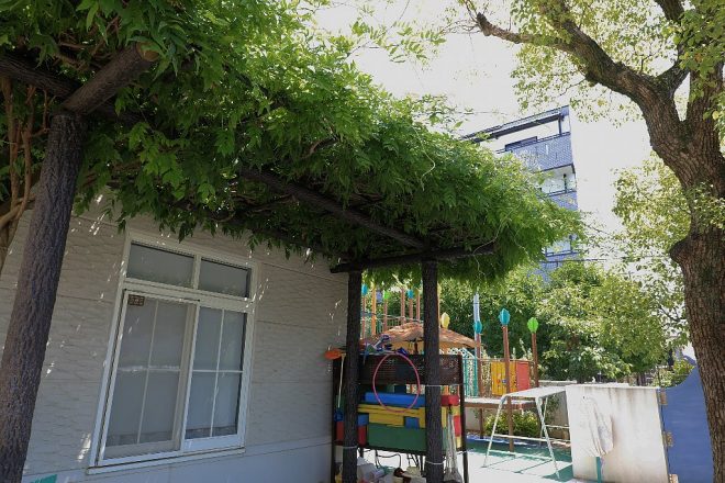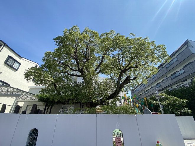 児童福祉施設・フタバ学園は、住宅が密集する東大阪市の一角にありました。外から見ても、創立20周年に植樹されたクスノキが青々と育ち、すっかり園のシンボルとなりました。
