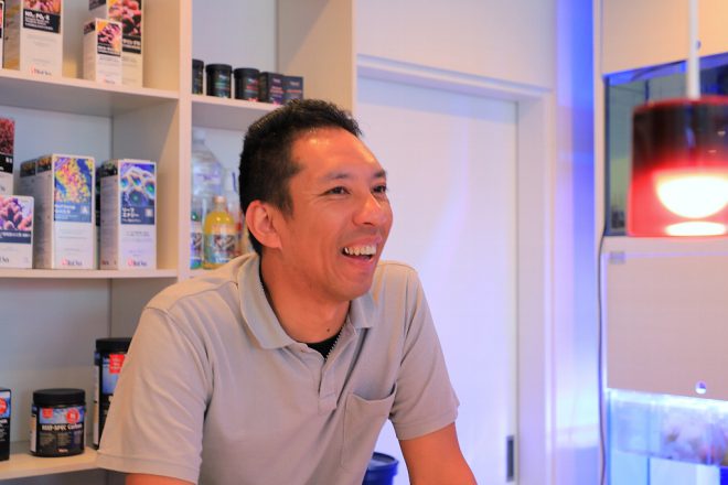その人望が認められてアクアショップの店長を3年間務め、その後4店舗のマネジメントまで任されてきた、福本雅一さん。