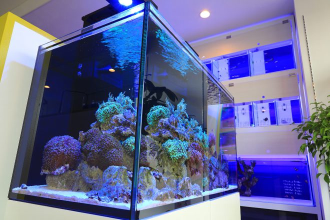 でも初心者がいきなり海水って難しいのでは?「いえいえ、初心者でもそれができるようにサポートしていくのが、私の仕事ですから」(福本さん)。穏やかそうな人柄と、物腰のやわらかな話し方。そこには、長年アクアで培ってきた自信もチラリ。初心者でもベテランでも、安心してアドバイスがもらえそうです。