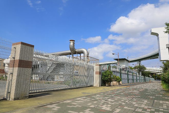 付近一帯は海老江下水処理場の広大な敷地。家庭や工場から出た生活排水や工場排水がすべてここで集約され、高度な最新技術で処理されています。