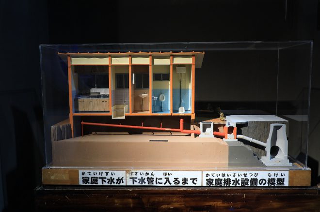 近未来的展示とはガラリと趣が変わって、なかなか昭和チックな展示物が(笑)。生活排水はどこから発生して、汚水となってどのように流れているのかが、シンプルながらよくわかります。