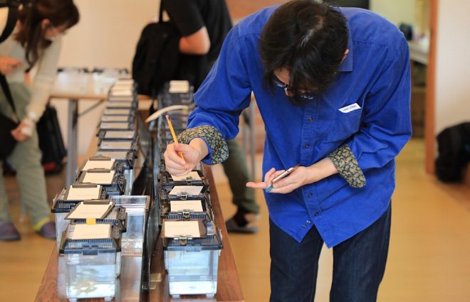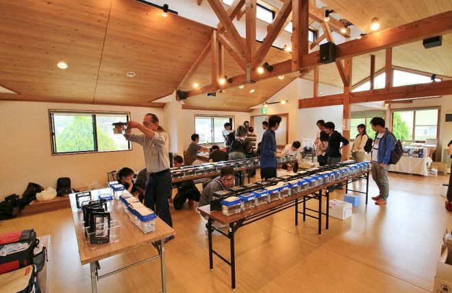 午前中は主に出品の受付。発送によってすでに到着している出品魚のを展示準備も始まっています。