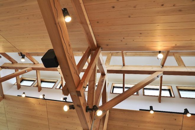 ◆会場は居心地よさげなログハウス風