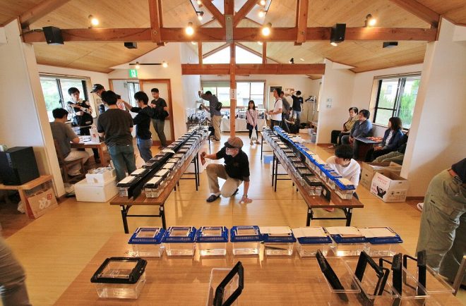 台風19号の影響で開催が危ぶまれた、奈良めだか倶楽部主催のグッピーコンテスト。関西地方は何とか直撃を免れたものの、出品予定だったグッピーや賞品がまともに届かなかったり、楽しみにしていたのに関東方面から人が来れなくなったり。とはいえ、運よく滑り込みセーフの荷物も少なくなく、80数点以上の出品が揃いイベントは無事開催。居心地のいい会場には、全国からグッピーファンが集結。しかも若手中心。居心地のいいイベントとなりました。