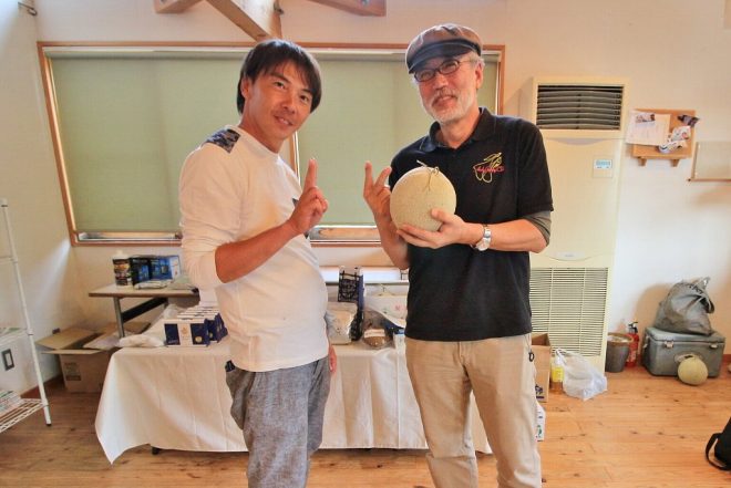 金沢から参戦の木村聡さんは成魚の部・ブルーテールコブラで5位、若魚の部・モザイクタキシードで4位にそれぞれ入賞。両部門とも賞品のメロンをゲット。「2玉もあると孫が喜ぶと思います」アンディー・グッピークラブの会長も、お孫さんにはヘナヘナなんでしょうね(笑)。