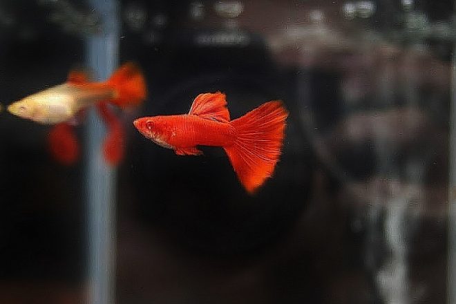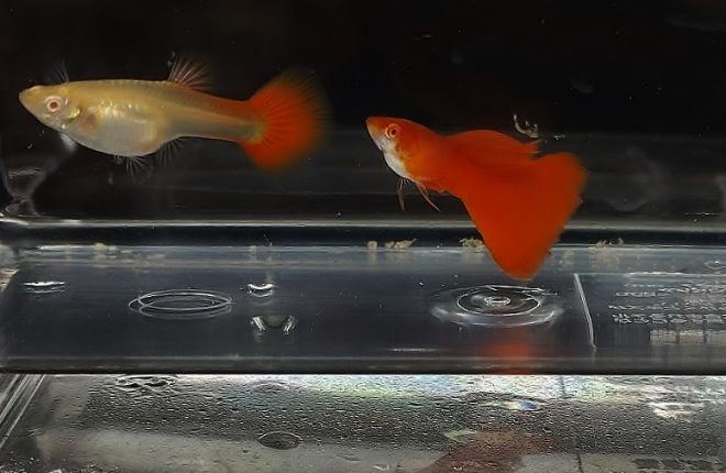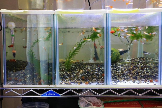 そこでピンときたのがグッピーでした。グッピーといえば、奈良めだか倶楽部が主催するグッピーコンテスト。キレイですよね、フルレッド。去年も一昨年もグッピーコンテストの取材にお邪魔して関心が高まりつつ、以前ホームセンターで外国産を購入したこともあり、飼うならグッピーしかない!と。