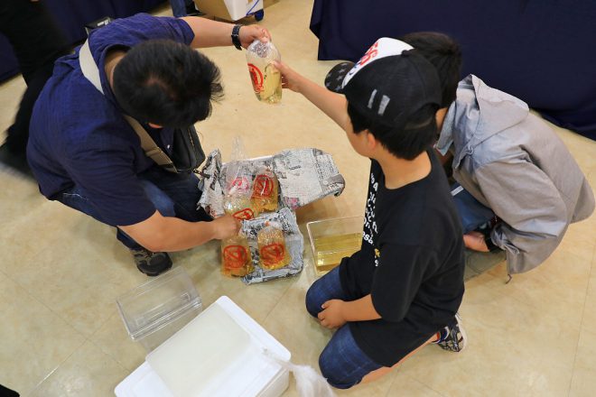 以前取材でうかがったと神戸動植物環境専門学校(中央)と大阪動植物海洋専門学校(両端2人)の現役専門学校生も、運営スタッフとして初めての参加。いいかい諸君。卒業までなんかあっという間なんだから、学内の勉強だけでなくこうした外部で色々な経験を積極的に積んで、しっかり目標を立ててブレることなく未来に向かっていくのだぞ(笑)!