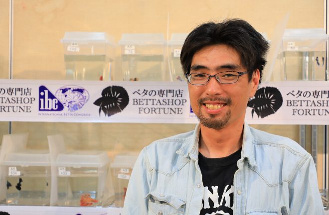 今回、初来日。韓国ではまだ1人も公認審査員がいないとのこと。世界的にみてもアクアがかなり浸透しているイメージがあっただけに、これは意外でした。ということは、彼がいずれ試験に合格すれば、韓国では初の公認審査員が誕生することになります。「多くの人にベタの魅力を知ってもらいたいんです」と、リーさん。いずれ近い将来、アジアにおけるベタの市場が大きく変化するかも知れませんね。