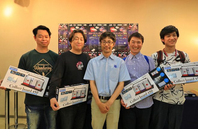 お、石原さんが協賛賞を受賞しました。ほかの受賞者とともに、賞品のフィルターを手に記念撮影。「いやいや、もっともっと頑張らないといけないと思います」と、協賛賞に満足することなく、入賞に向けて力強くコメントしてくれました。